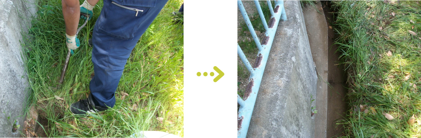 ● 薬散布をする場合にも、人通りに配慮し、2~3人体制で散布を致します。 必要に応じて各戸にお声かけ致します。